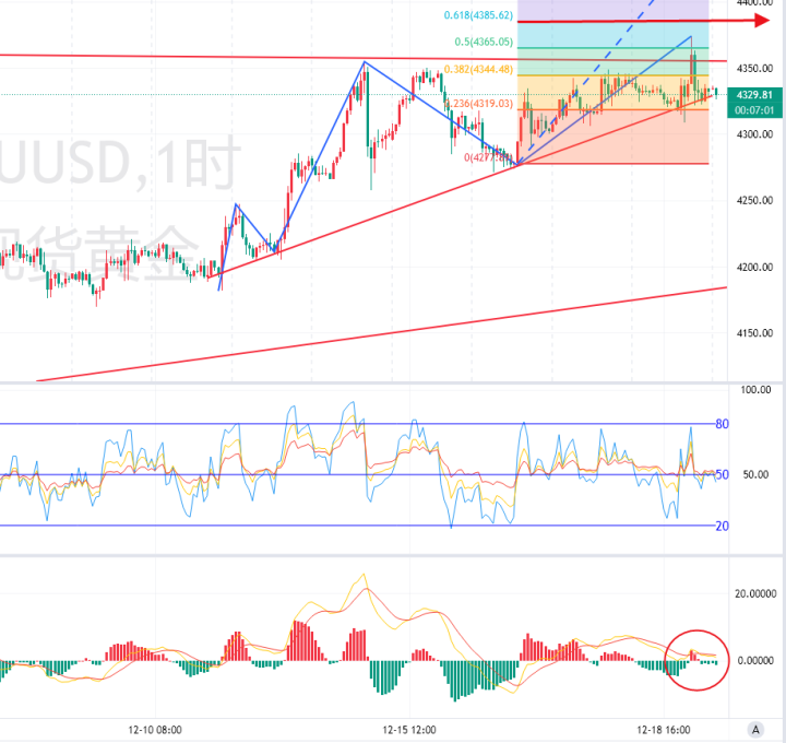 又到周五了,周四黄金日线收长引线的小阴柱,好音问是黄金终于破位4350,最高达4374;坏音问是好意思盘后深夜扫数吐出,开盘价4338,收盘价4332。但我们昨天的标的也还是达到,破位4350。今天的标的继续北上,等回调去接多,今天就去存眷日本央行利率有筹算事件。